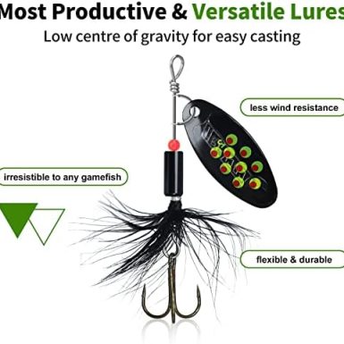 • TRUSCEND Swim or Jig Fishing Spinner Baits for Freshwater and Saltwater, Rooster Tail Fishing Lures for Trout Bass Walleye Crappie Salmon Pike, Blade Bait with Copper Blade