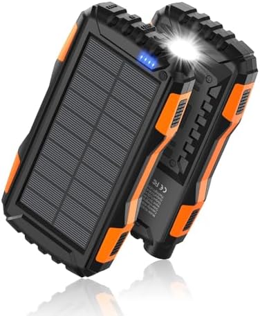 Power-Bank-Solar-Charger – 42800mAh Portable Charger,Solar Power Bank,External Battery Pack 5V3.1A Qc 3.0 Fast Charger Built-in Super Bright Flashlight (Orange)