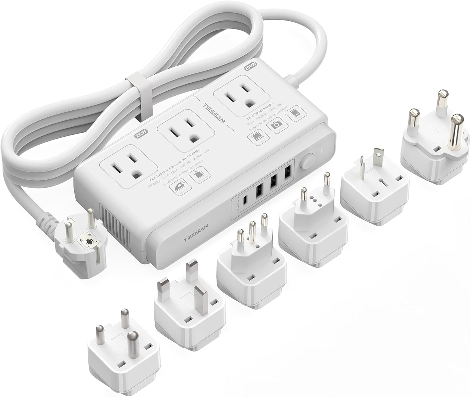 Traveling abroad? Ensure your devices stay powered with the TESSAN 220V to 110V Voltage Converter. Designed for the modern traveler, this versatile power adapter effortlessly converts voltage for your electronics while accommodating a range of international plugs. Whether you’re headed to Europe, the UK, Australia, or Italy, this all-in-one travel companion has you covered!